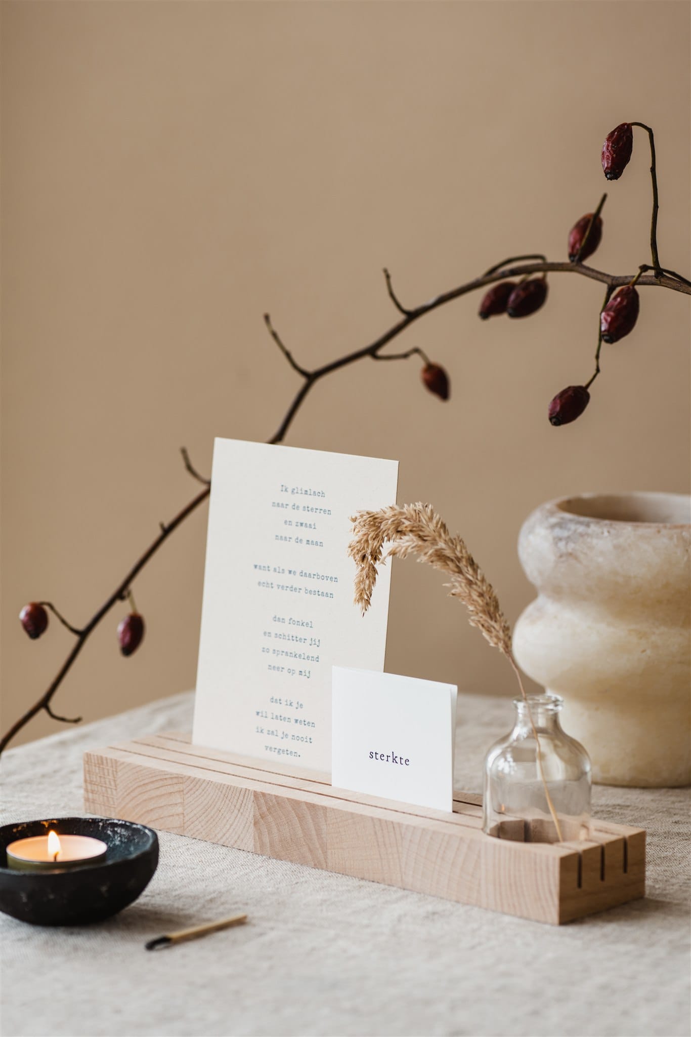 Geef dat lieve gedichtje of een dierbare foto een mooie plek in de massieve beukenhouten houder. Een houvast voor dat ene aandenken waar jij vrolijk van wordt en waarde aan hecht.