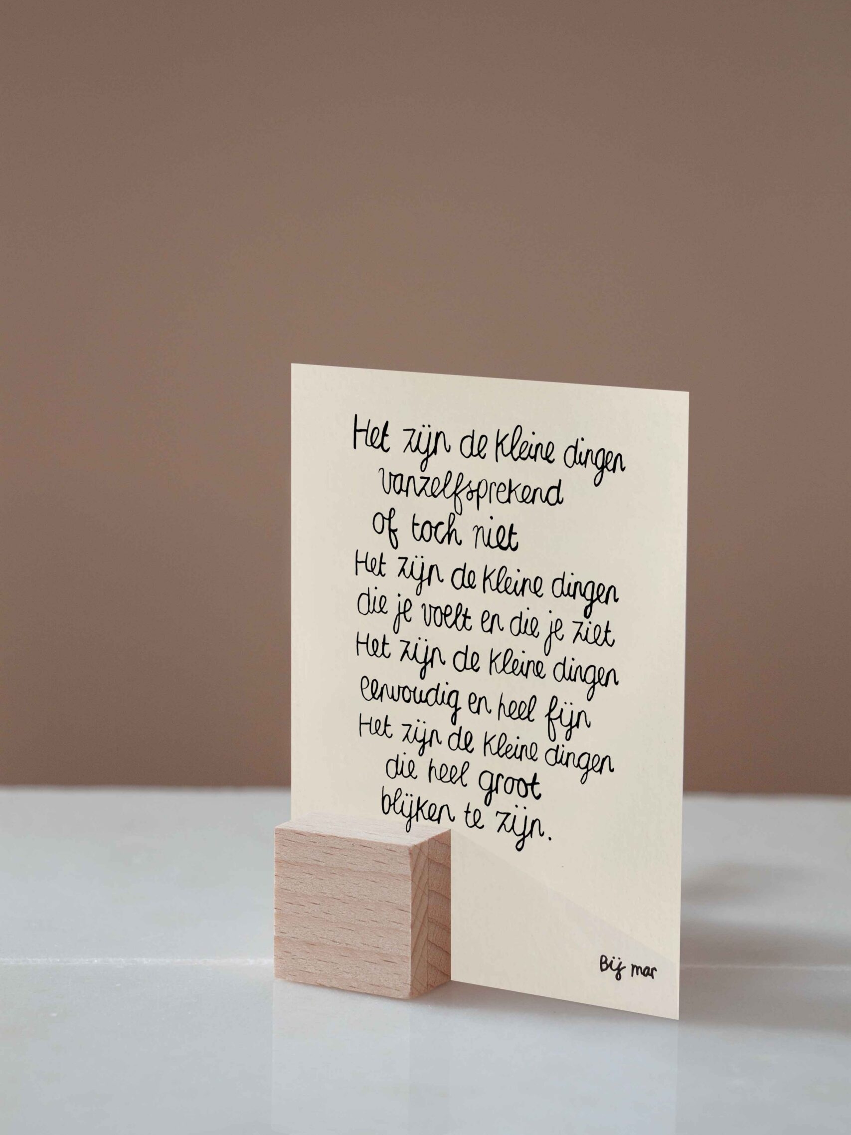 Mooie gedichtjes die beginnen met een gevonden woord. Kaartjes voor elk moment en met liefde schrijven wij jouw persoonlijke boodschap op.