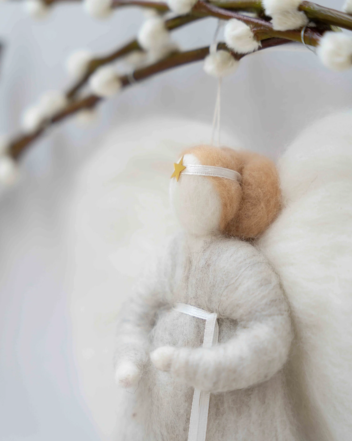 - Engel, materiaal: gekamde strengen merinowol, op ethische wijze verkregen en dus, zoals dat heet, mulesing free.