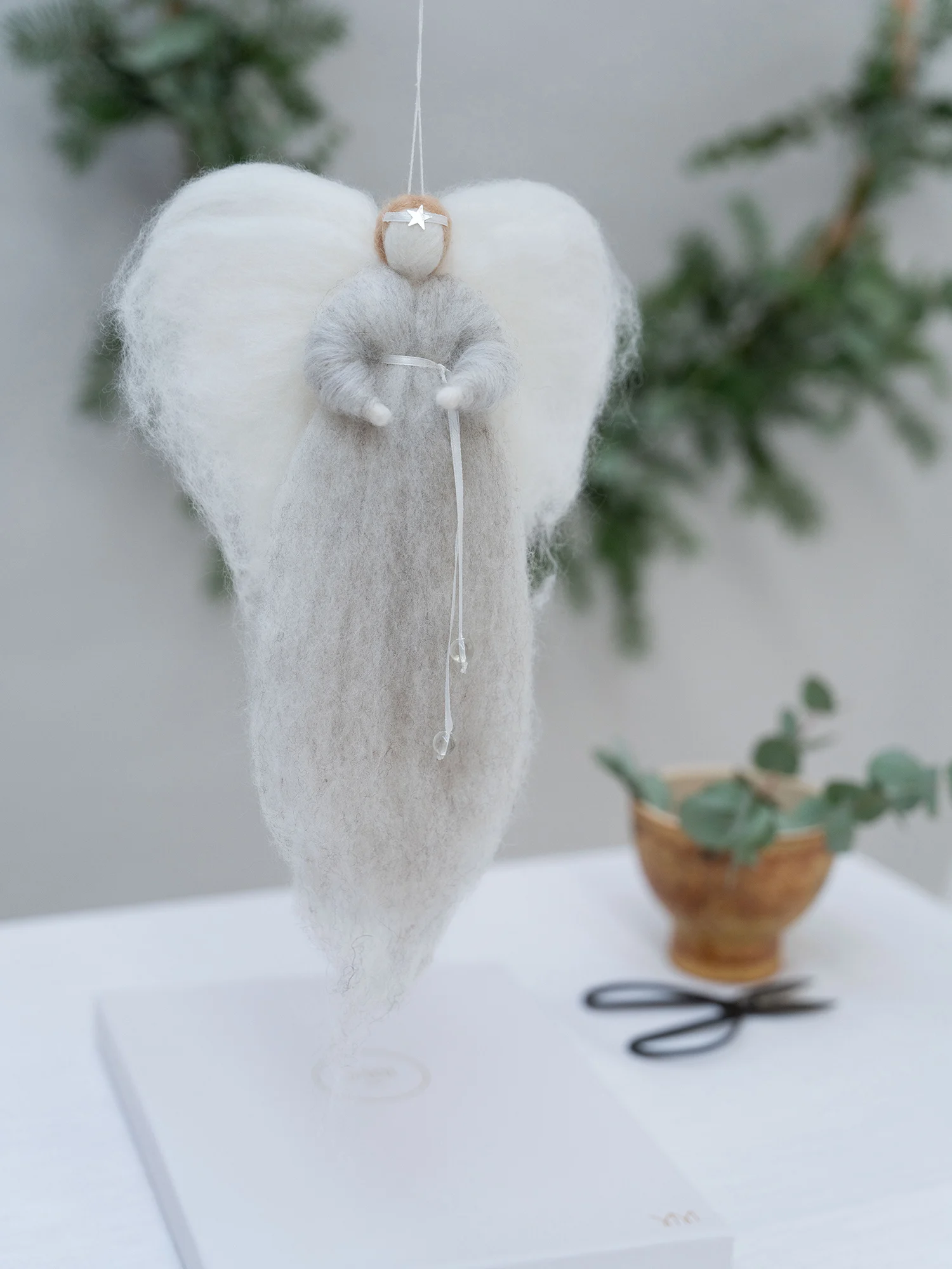 IRINI is een 30 cm grote engel van luchtige, losse merinowol. Met liefde door mij ontworpen en vervolgens gemaakt door de ambachtsvrouwen in het bedrijf van Keepa en haar moeder Shanti in Kathmandu (Nepal). De engel wordt geleverd in een stevige, bijpassende geschenkdoos.