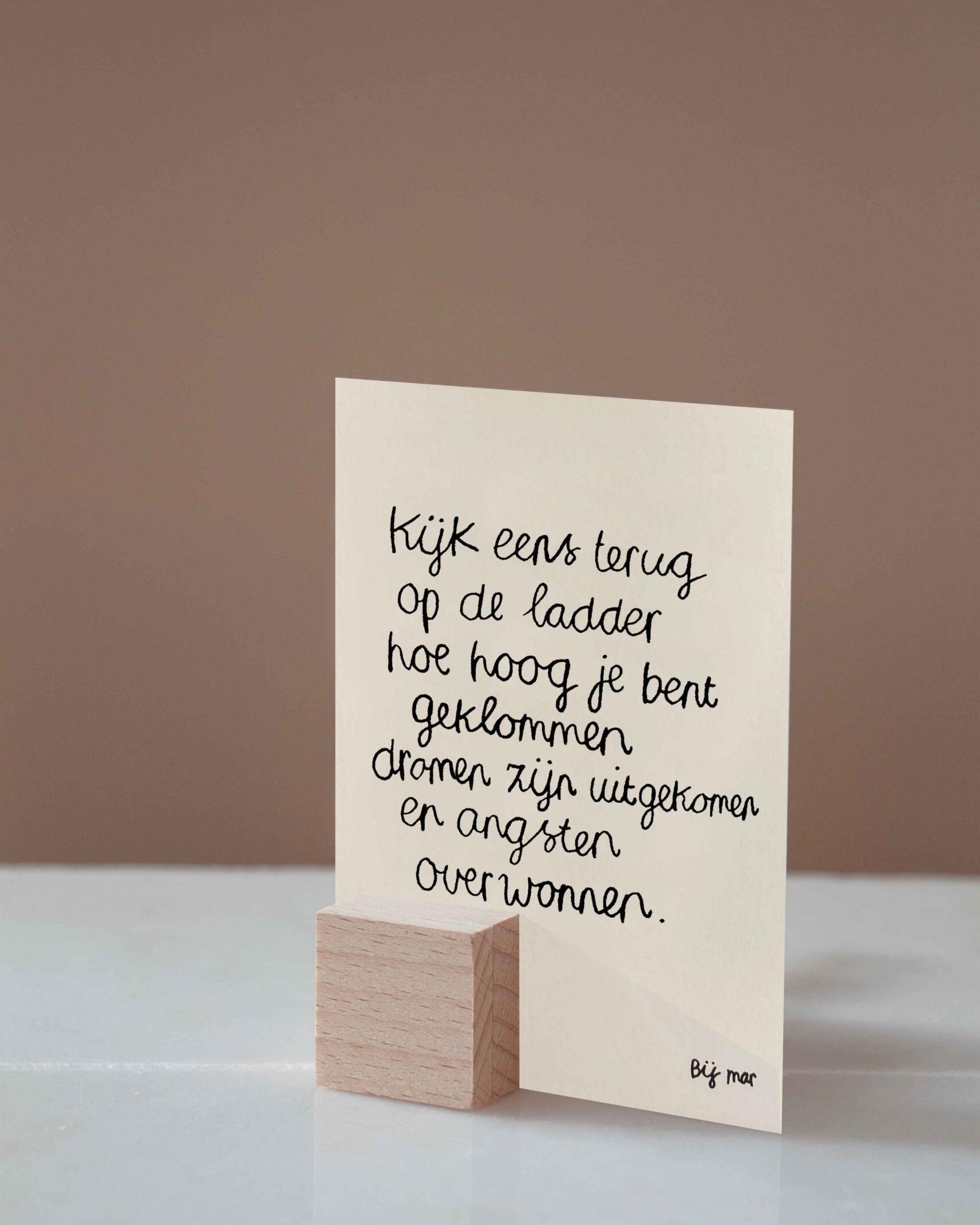 Collectie handgeschreven kaarten, Bij Mar. Kies een kaartje om steun te bieden, om iemand te laten weten dat je aan diegene denkt. Een kaartje met een liefdevolle boodschap om zo jouw medeleven op een warme manier over te brengen. De kaartjes passen prachtig in de Hold it’s.