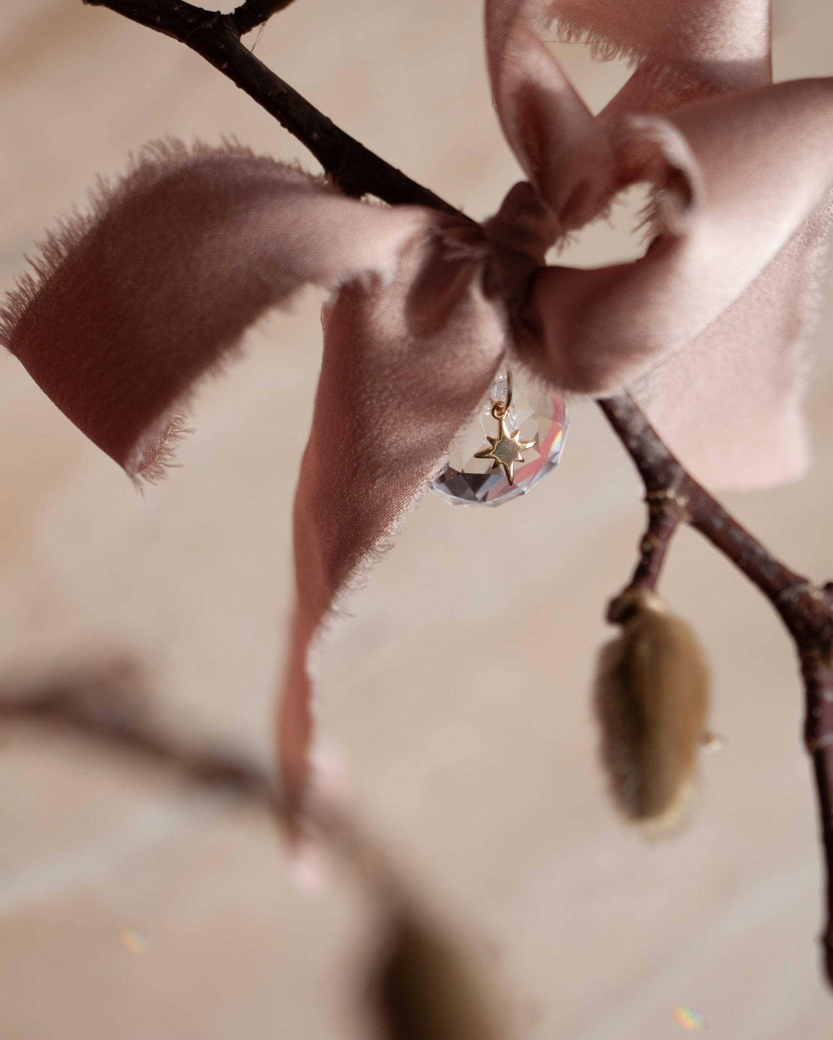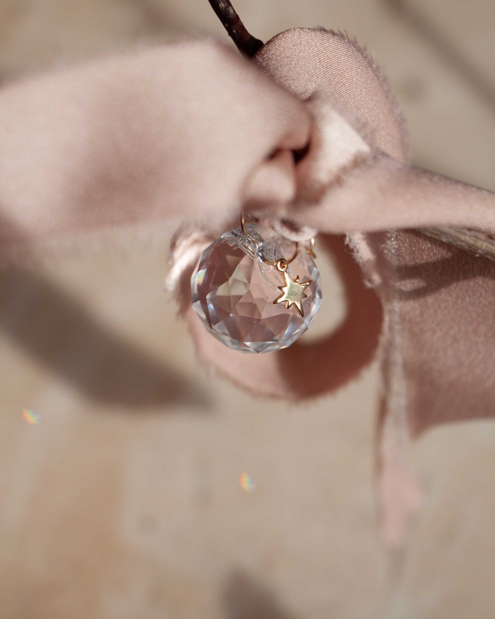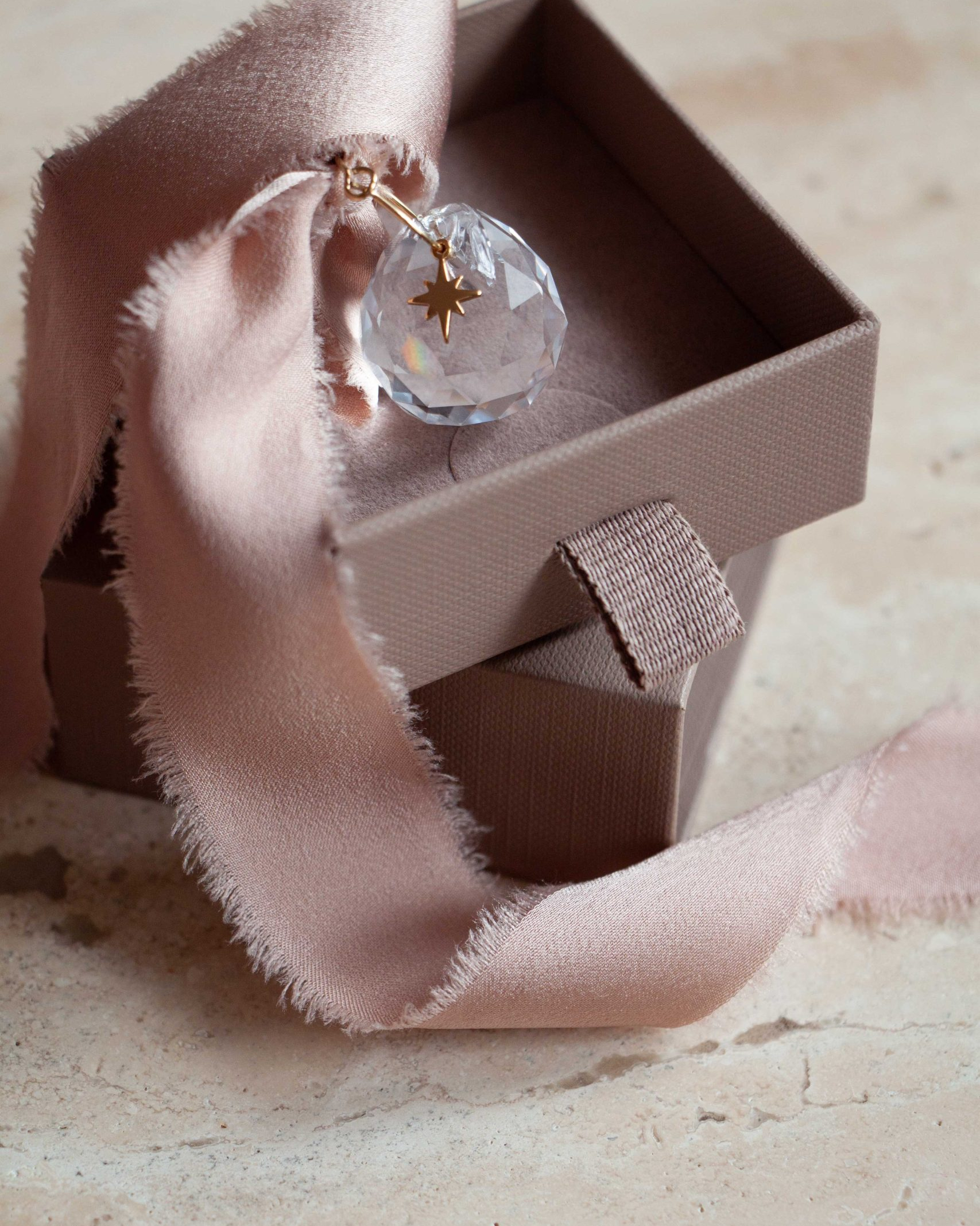 kristal zonnevanger 2 cm in een mooi doosje / messing sterretje / gedichtje / satijnen lint