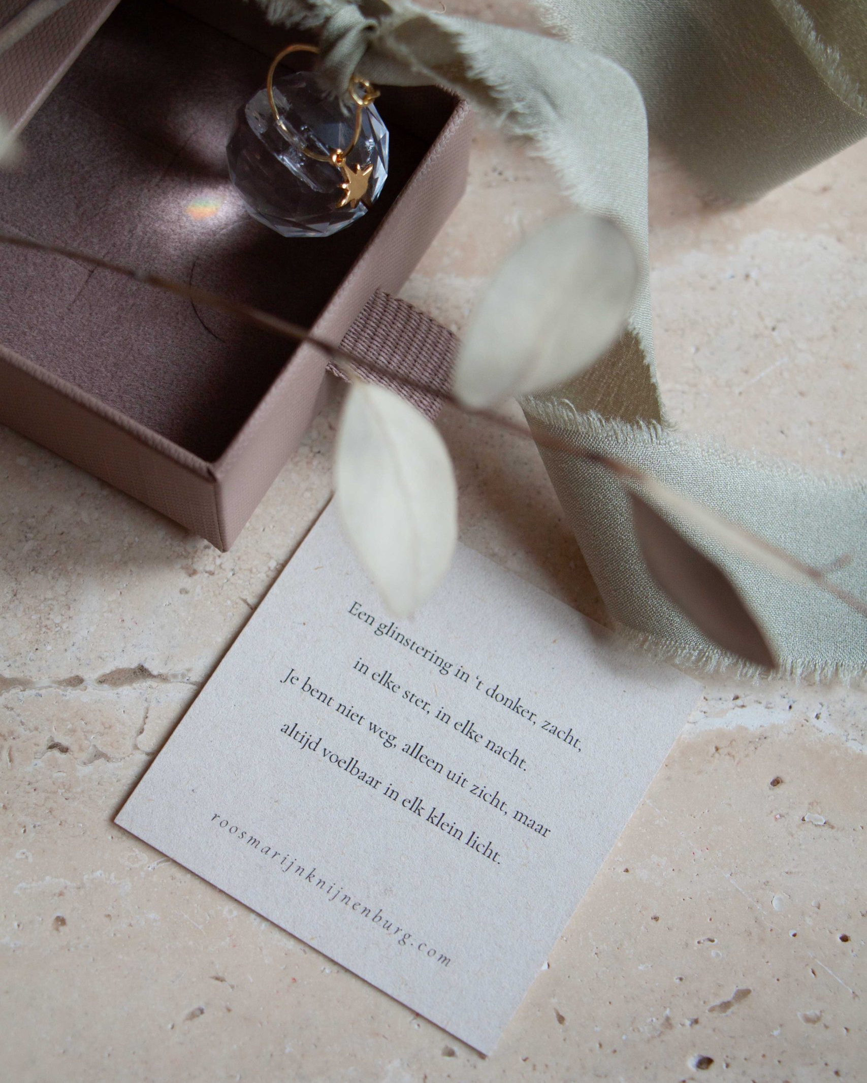 Een glinstering in ‘t donker, zacht, in elke ster, in elke nacht.
