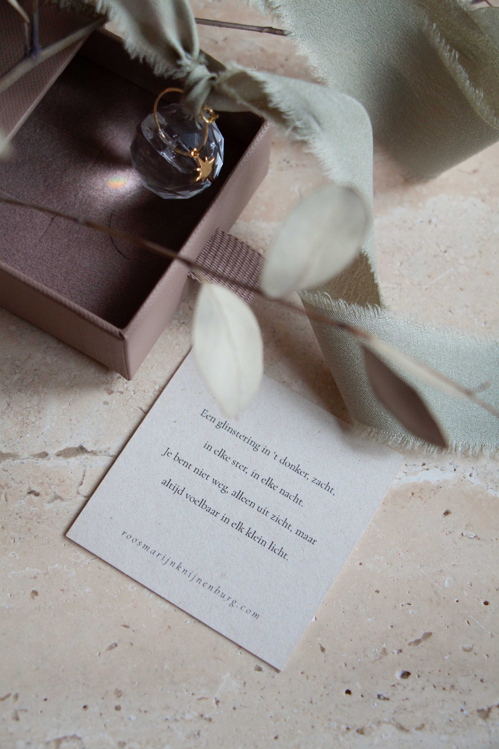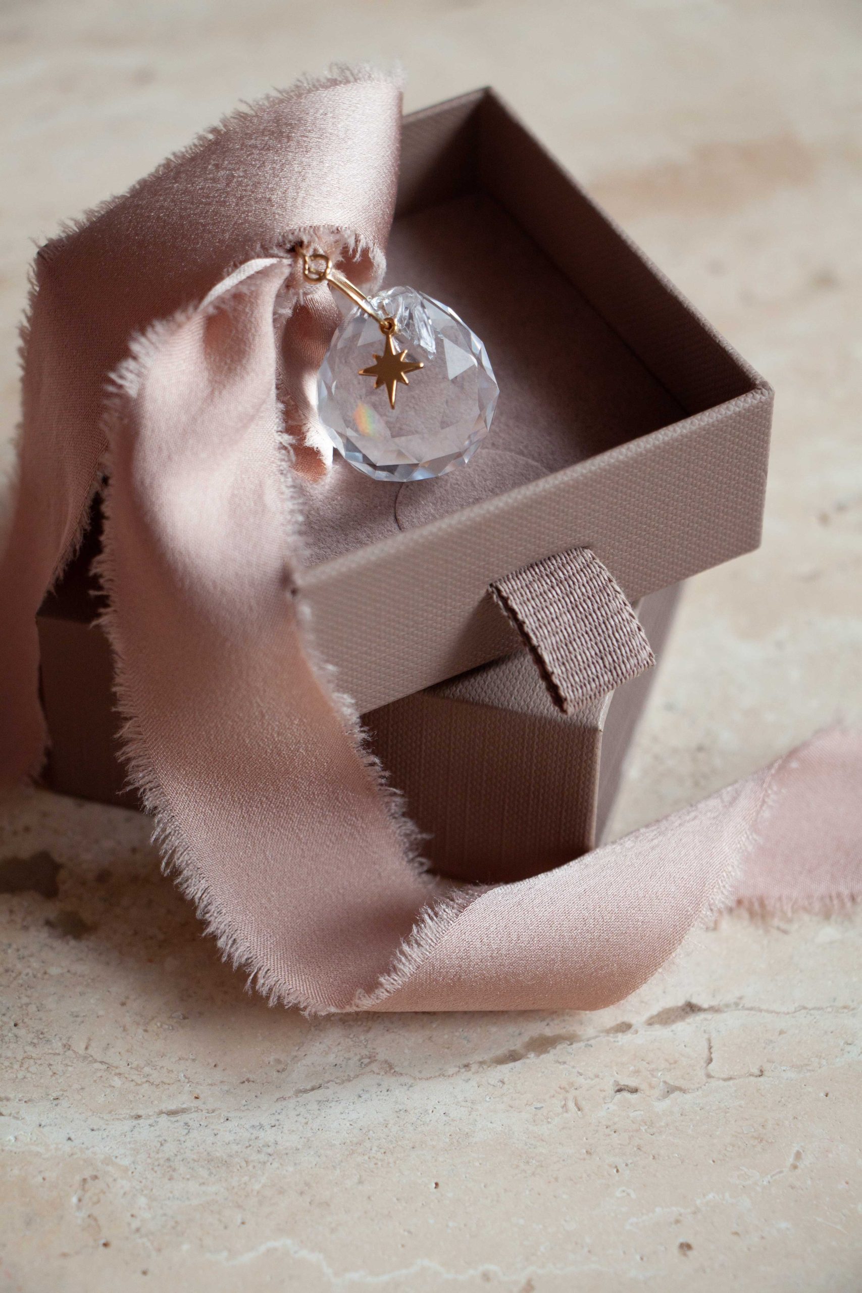 kristal zonnevanger 2 cm in een mooi doosje / messing sterretje / gedichtje / satijnen lint